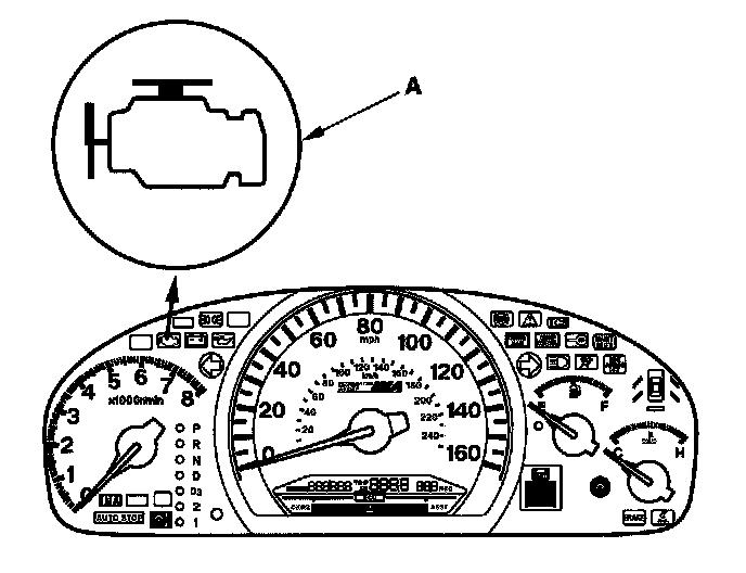 1. Start the engine, and check the MIL (A).