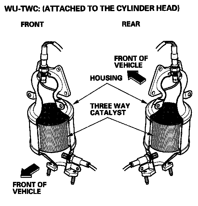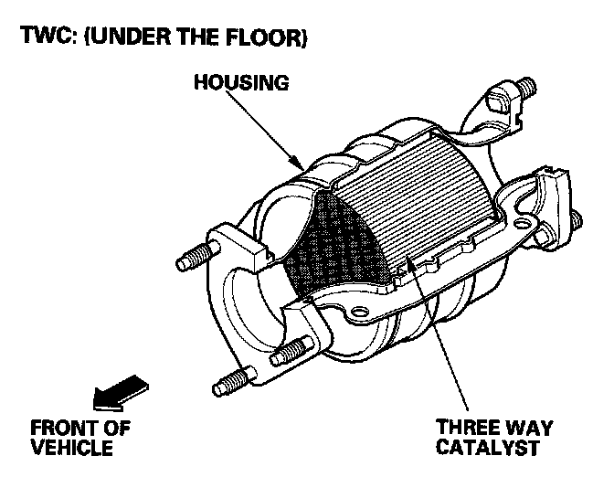 The WU-TWC/TWC converts hydrocarbons (HC), carbon monoxide (CO), and oxides of nitrogen (NOx) in the exhaust gas to carbon dioxide (CO2), nitrogen (N2), and water vapor.