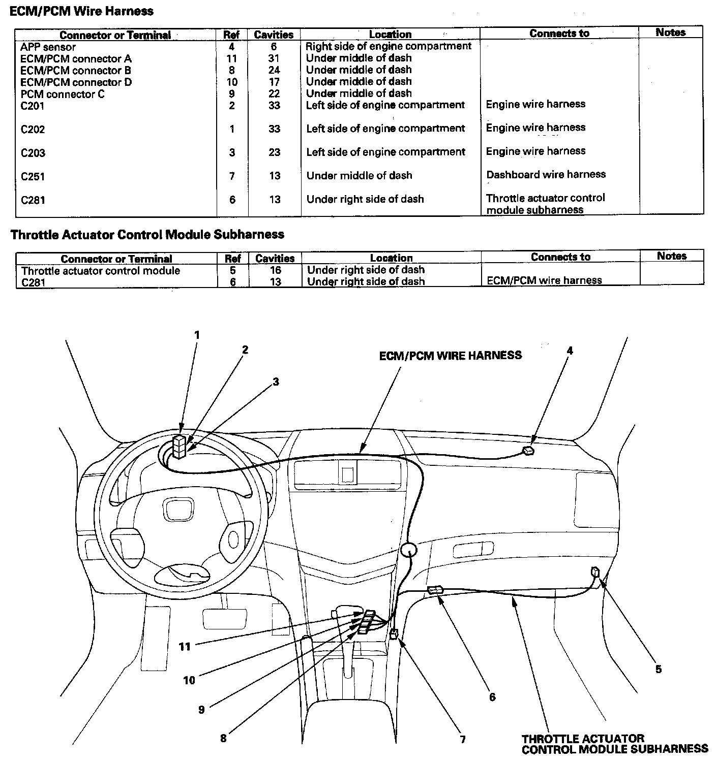 ECM/PCM Wire Harness/Throttle Actuator Control Module Subharness: