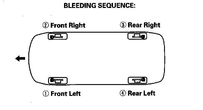 5. Repeat the procedure for each wheel in the sequence shown following until air bubbles no longer appear in the fluid.