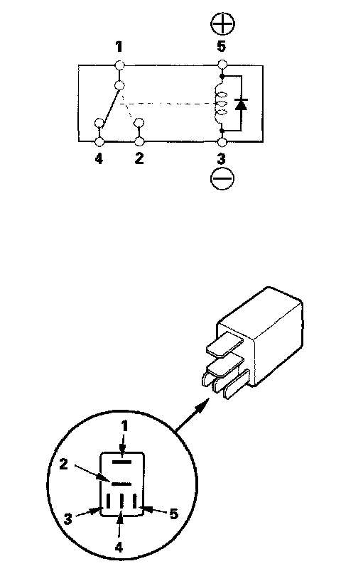 - There should be continuity between the No. 1 and No. 2 terminals when battery positive terminal is connected to the No. 4 terminal, and battery negative terminal is connected to the No. 3 terminal.