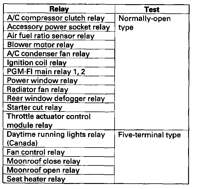 Main Relay (Computer/Fuel System): Testing and Inspection