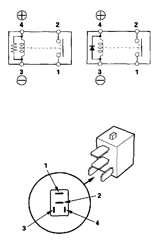 - There should be continuity between the No. 1 and No. 2 terminals when battery positive terminal is connected to the No. 4 terminal, and battery negative terminal is connected to the No. 3 terminal.