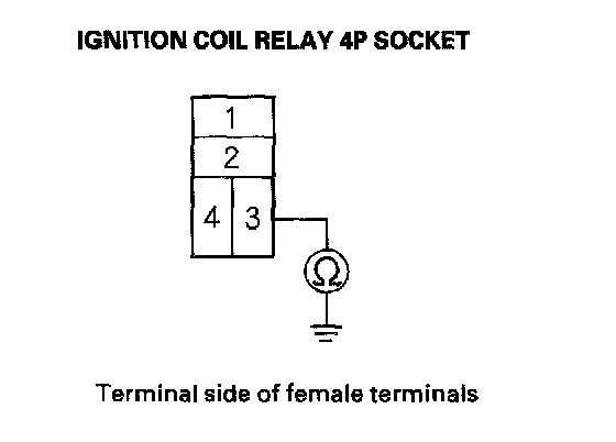5. Check for continuity between ignition coil relay 4P socket terminal No. 3 and body ground.