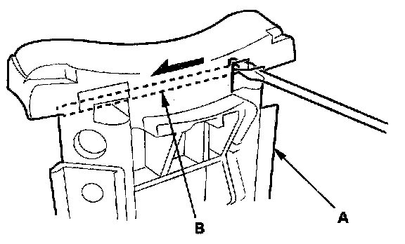 5. From the back of the armrest backbone (A), push the edge of the armrest lock pin (B) with a flat-tip screwdriver, then slide the armrest lock pin fully.