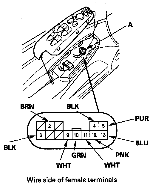- If the left mirror does not tilt down (or does not swing left), check for an open in the PUR (or PNK) wire between the left mirror and the 13P connector.