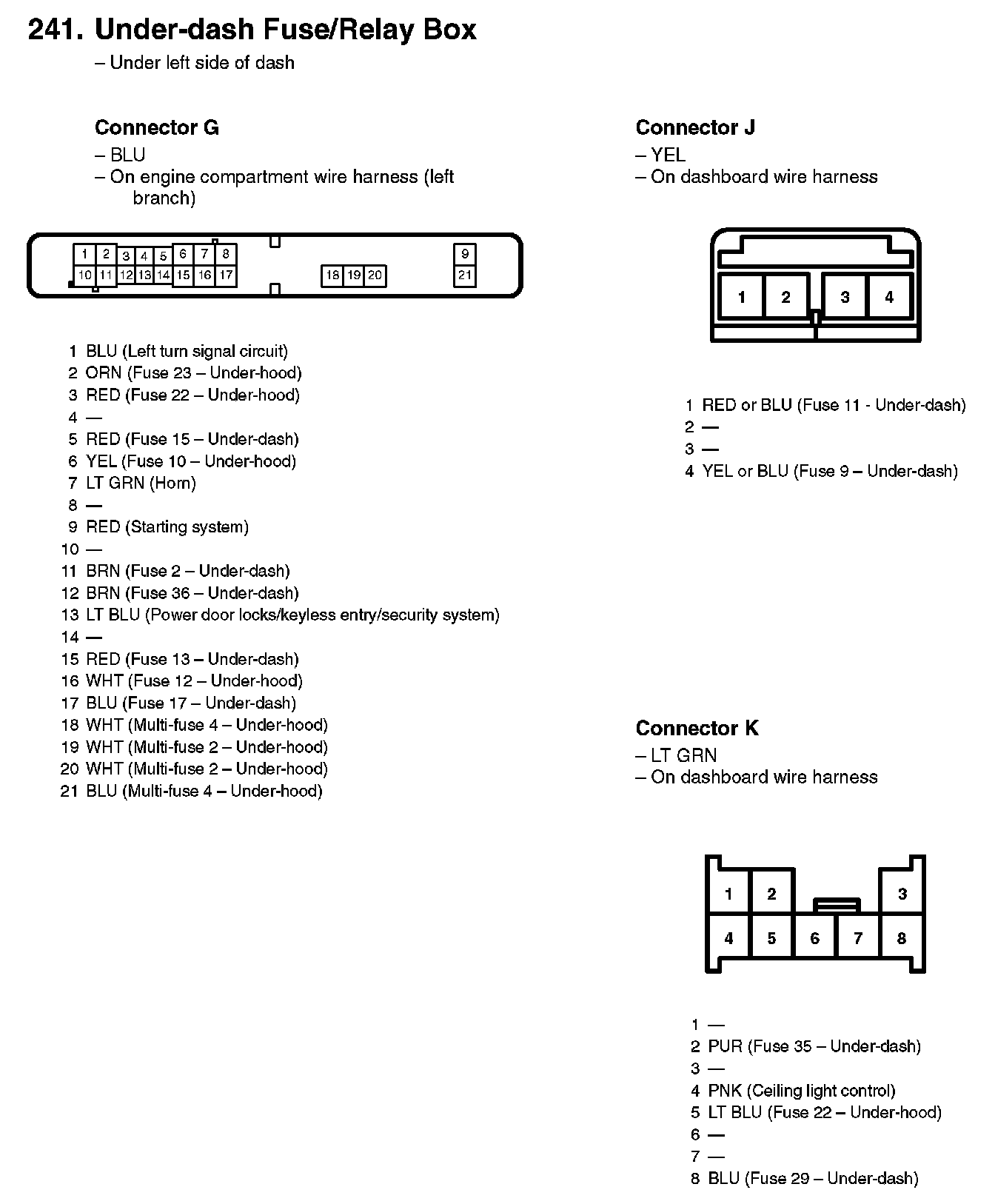 241. Under-dash Fuse/Relay Box: