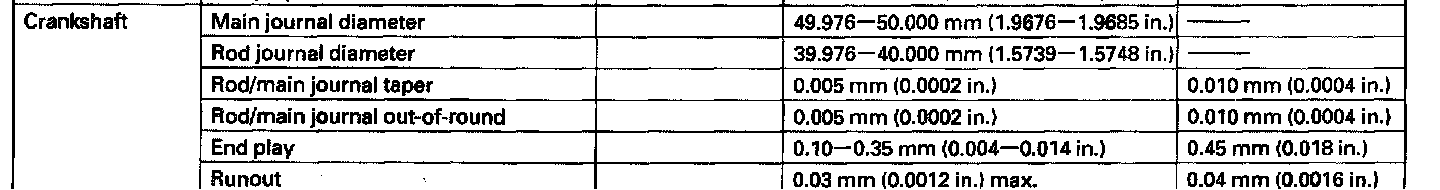 Crankshaft: Specifications
