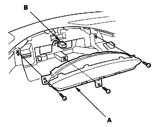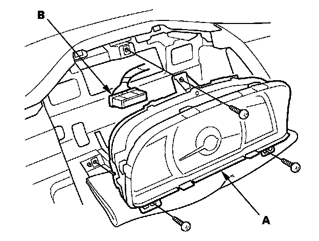 2. Remove the three screws from the gauge control module (speedo) (A).