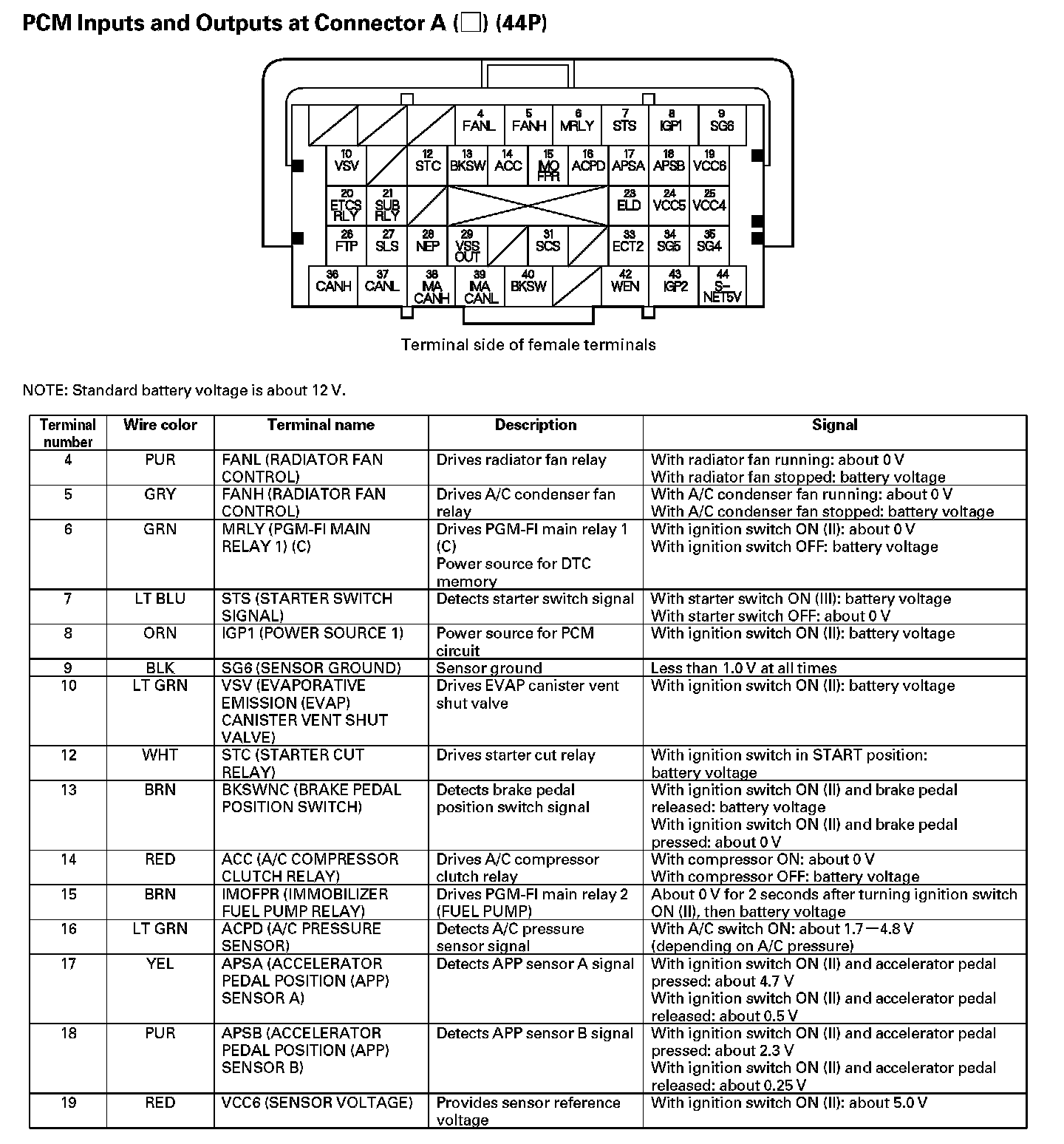 PCM Inputs And Outputs At Connector A (44P) Part 3: