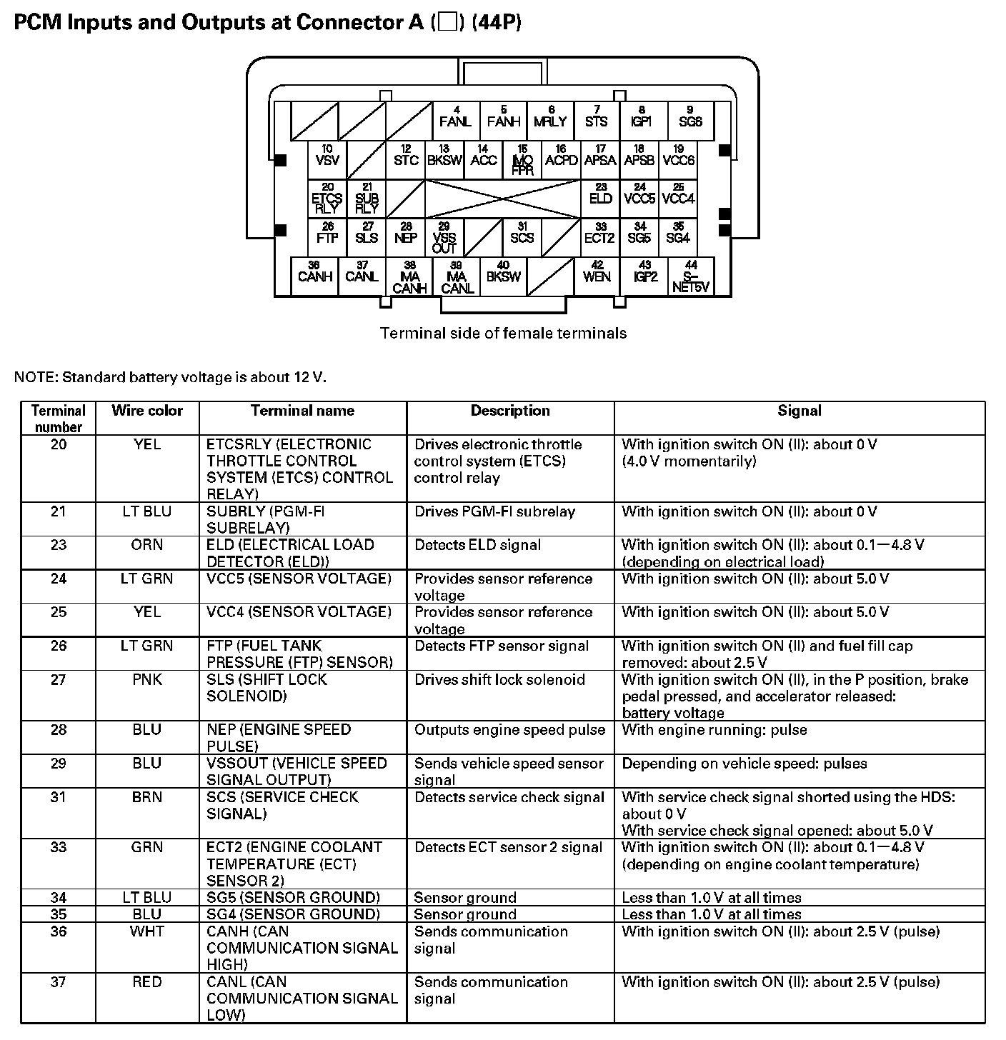 PCM Inputs And Outputs At Connector A (44P) Part 1: