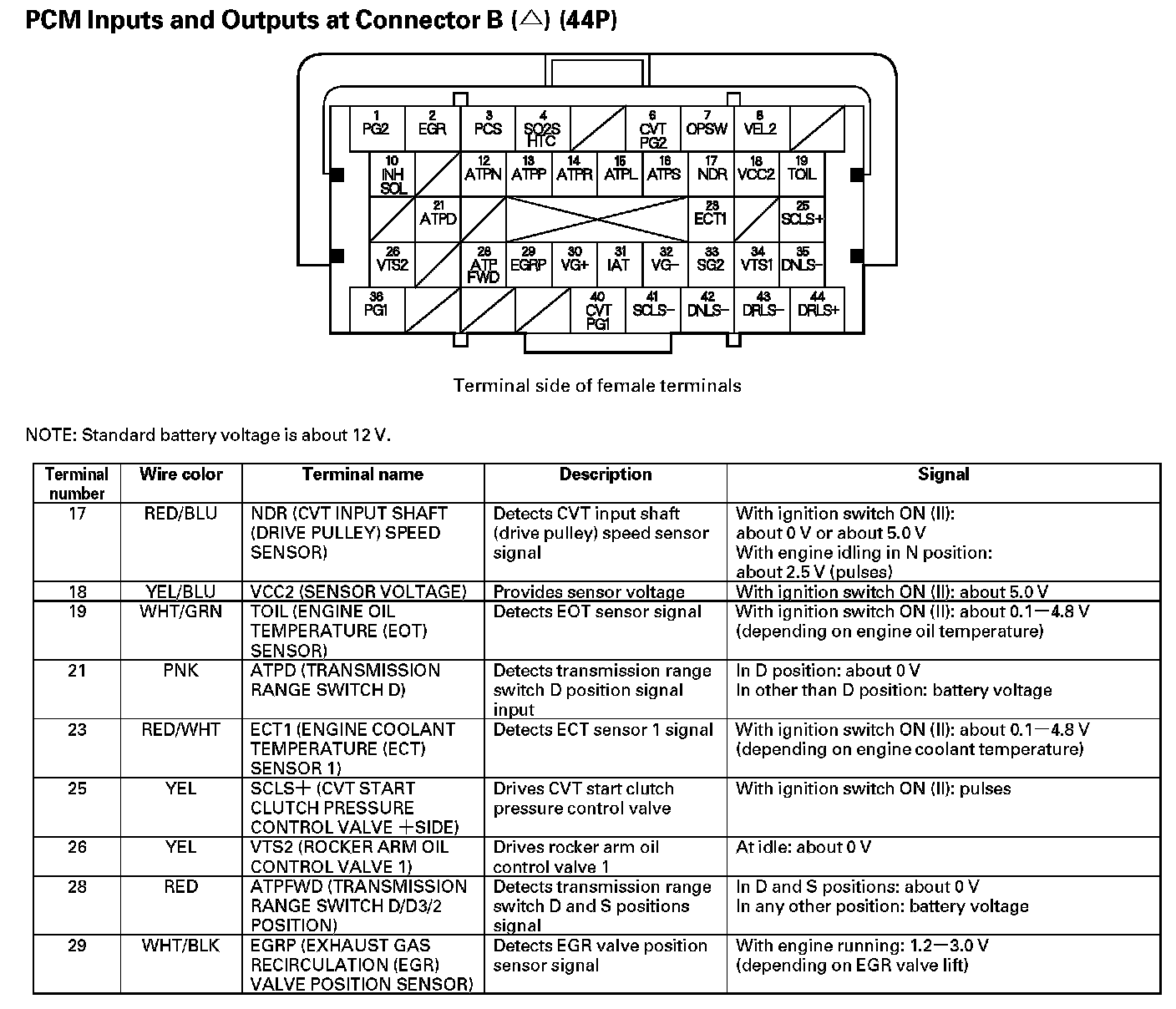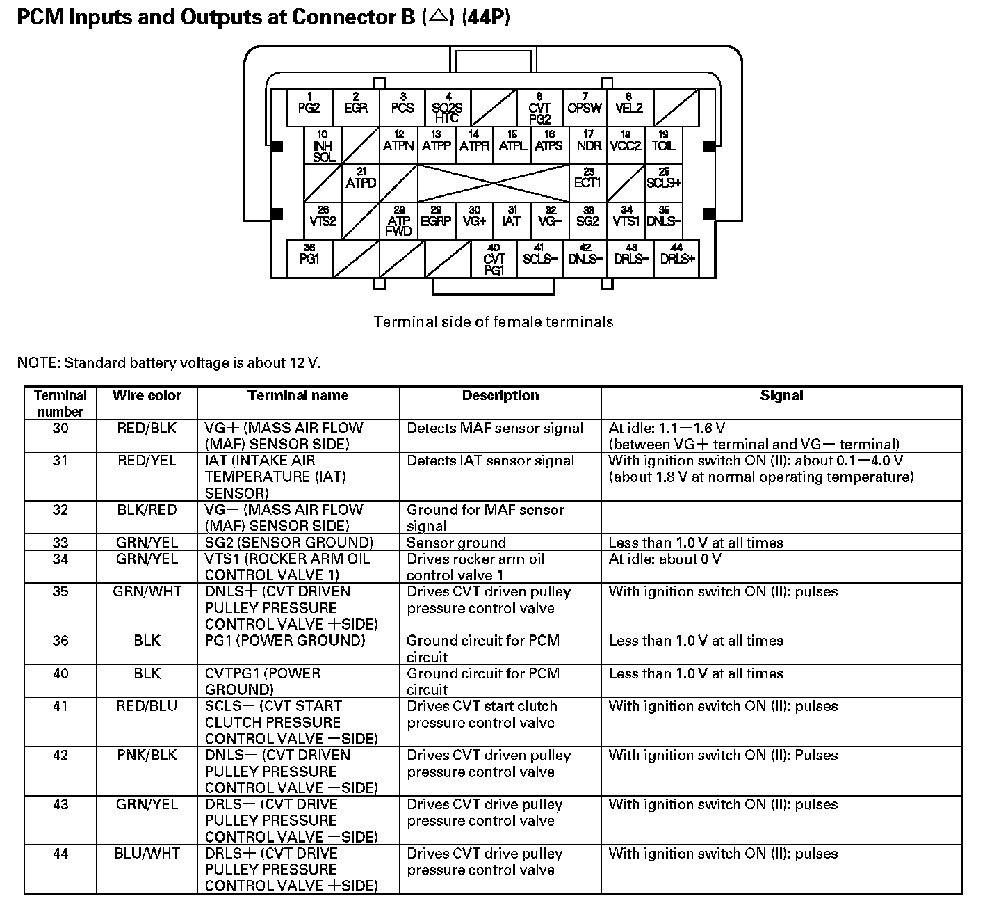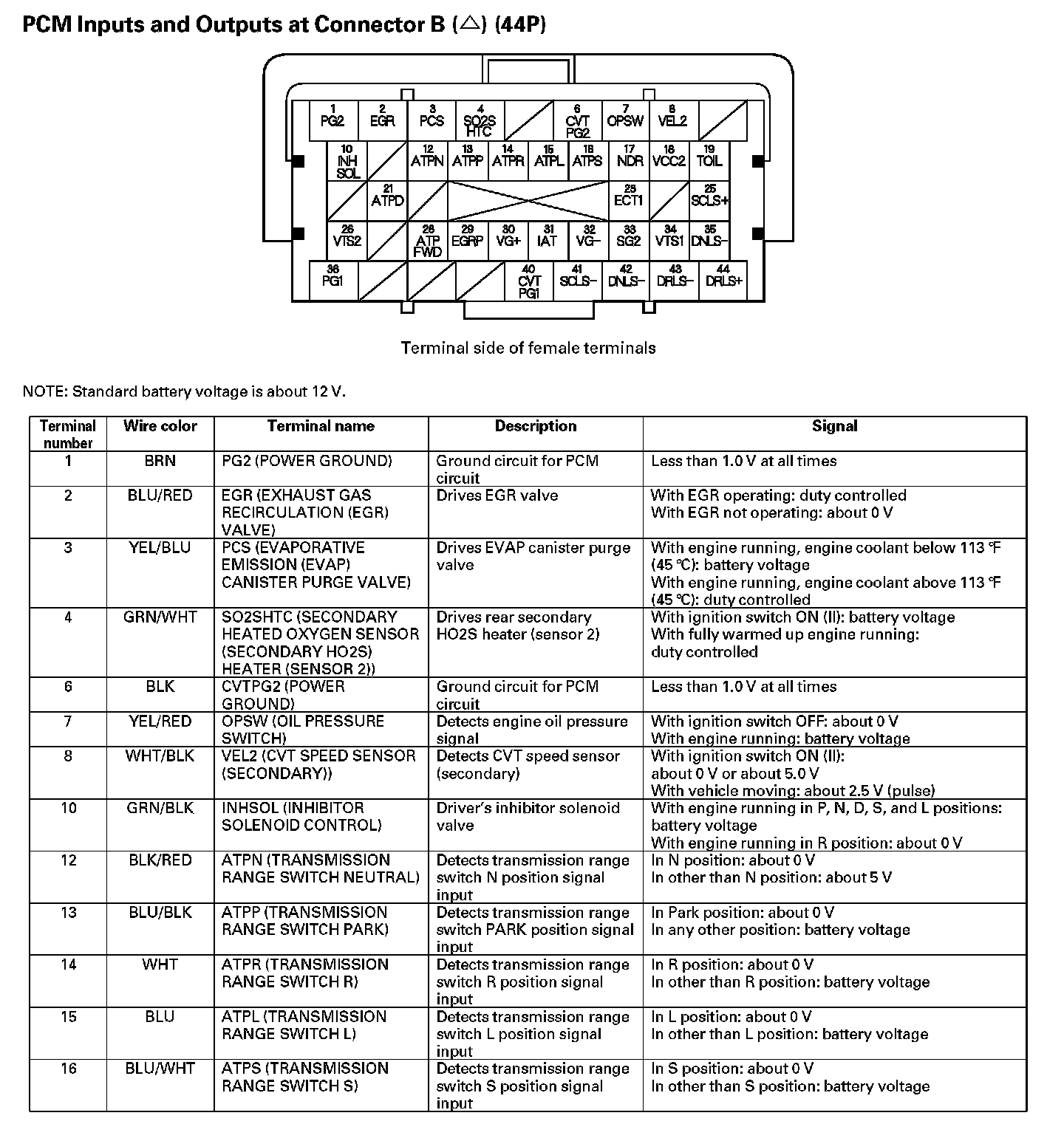 PCM Inputs And Outputs At Connector B (44P) Part 1: