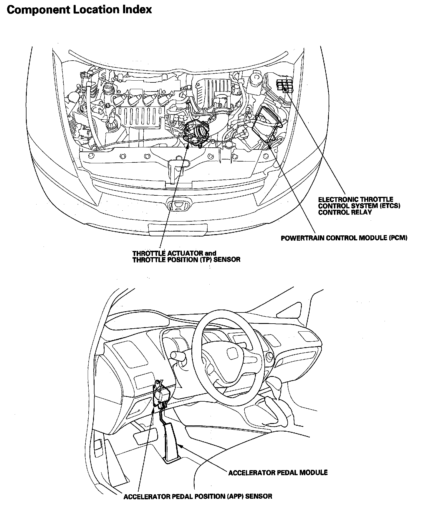 Electronic Throttle Control System Component Location Index: