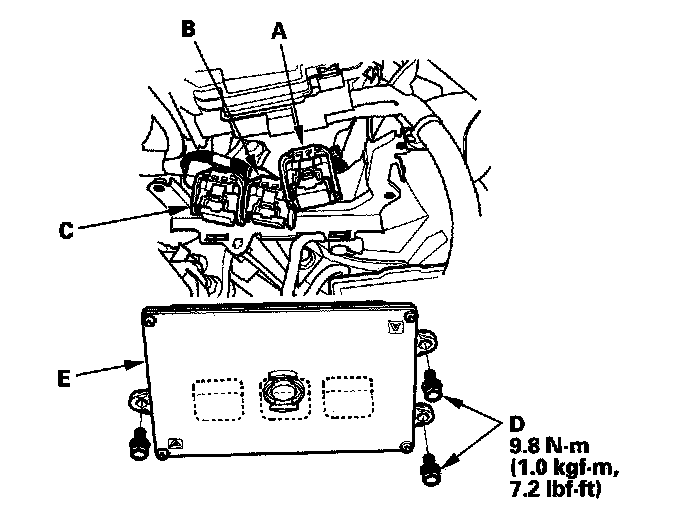 NOTE: PCM connectors A, B, and C have symbols (A = "Square", B = "Triangle", C = "Circle") embossed on them for identification.
