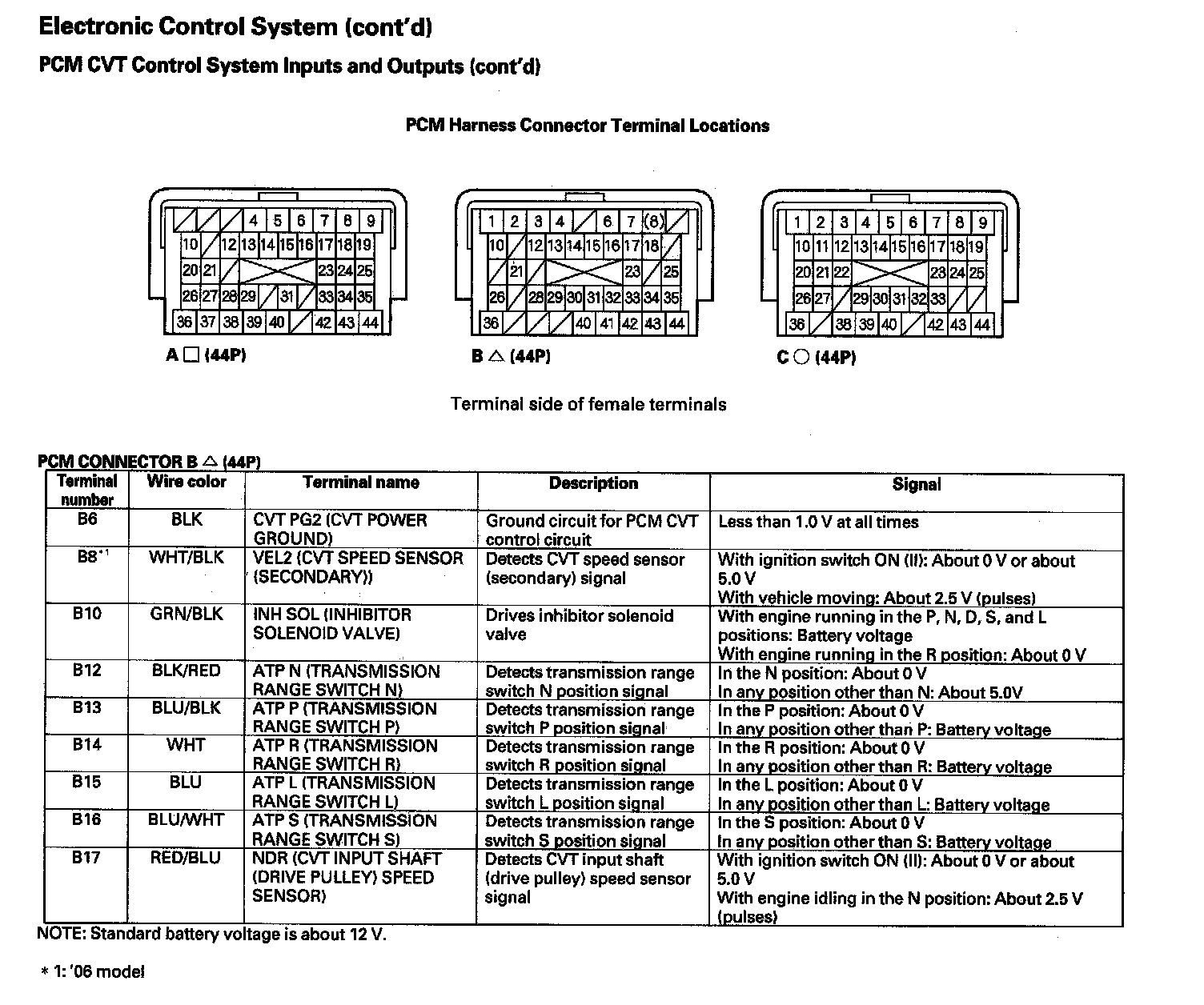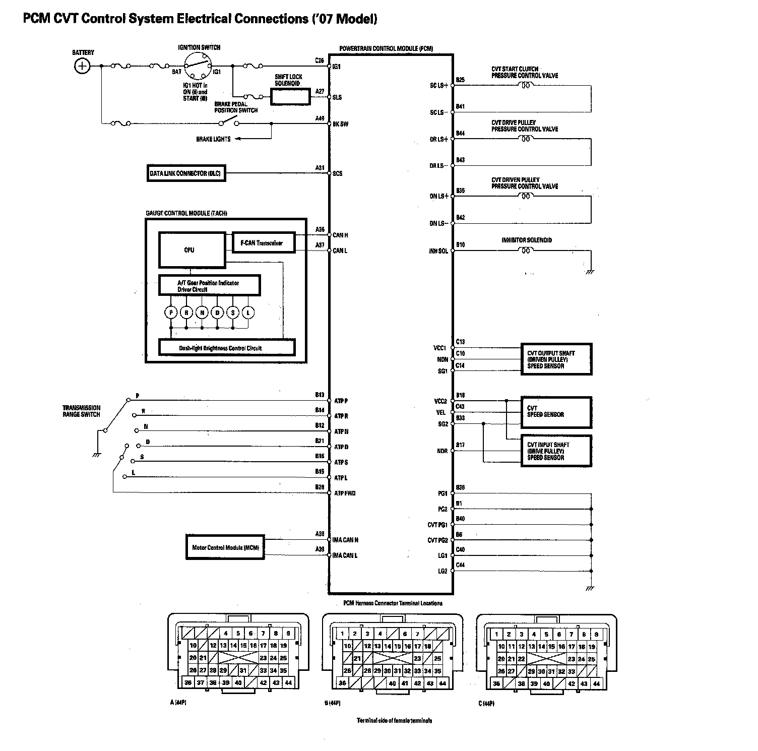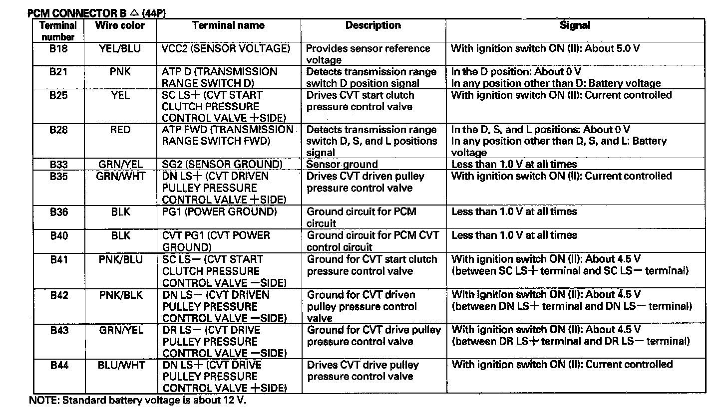 The PCM controls the shift pulley ratio through the solenoids, while receiving input signals from the various sensors and switches located throughout the vehicle. The PCM actuates the pulley control solenoids to control pulley control valves A and B. Drive pulley pressure is regulated at pulley control valve B and applied to the drive pulley, driven pulley pressure is regulated at pulley control valve A and applied to the driven pulley, and the pulley ratio is changed to their directed ratio.