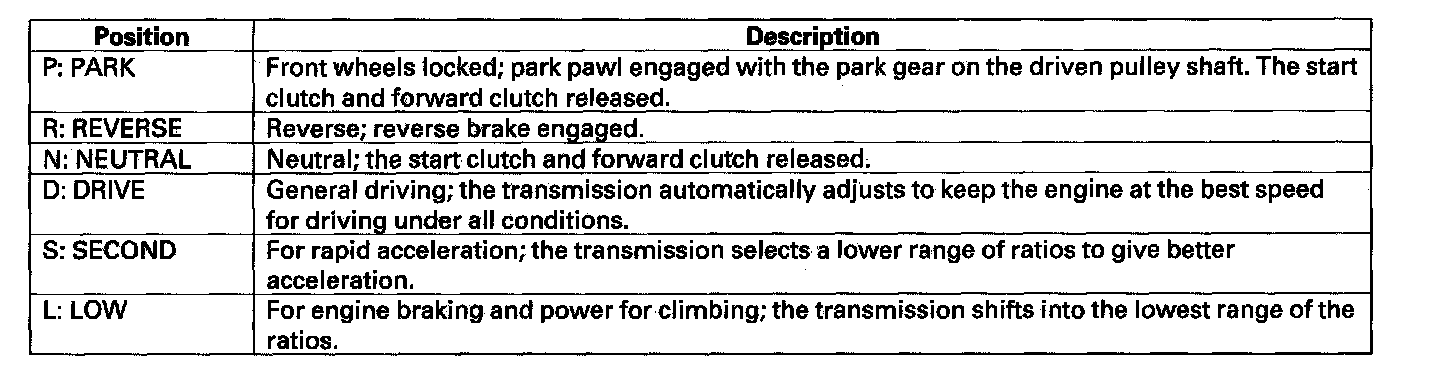 The continuously variable transmission (CVT) is an electronically controlled automatic transmission with drive and driven pulleys, and a steel belt. The CVT provides non-stage speeds forward and one reverse.
