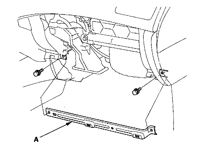2. Cut the plastic cross brace (A) in the glove box opening with diagonal cutters in the area shown, and discard it.