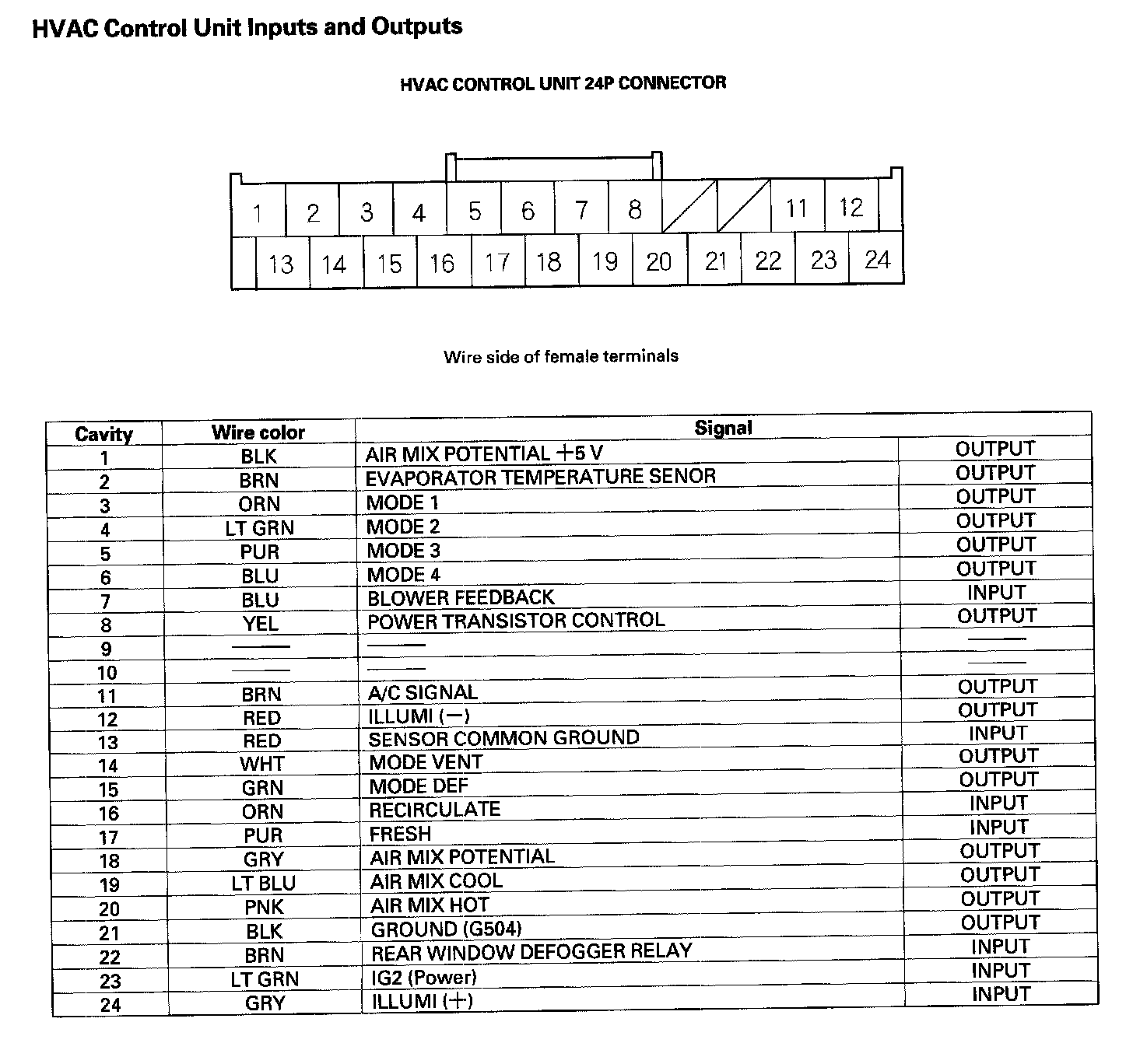 HVAC Control Unit Inputs And Outputs:
