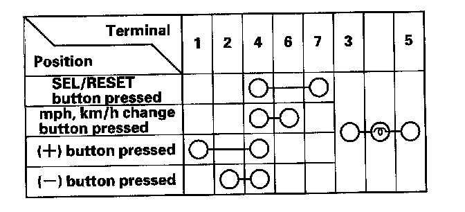 3. Check for continuity between the terminals in each switch position according the table.