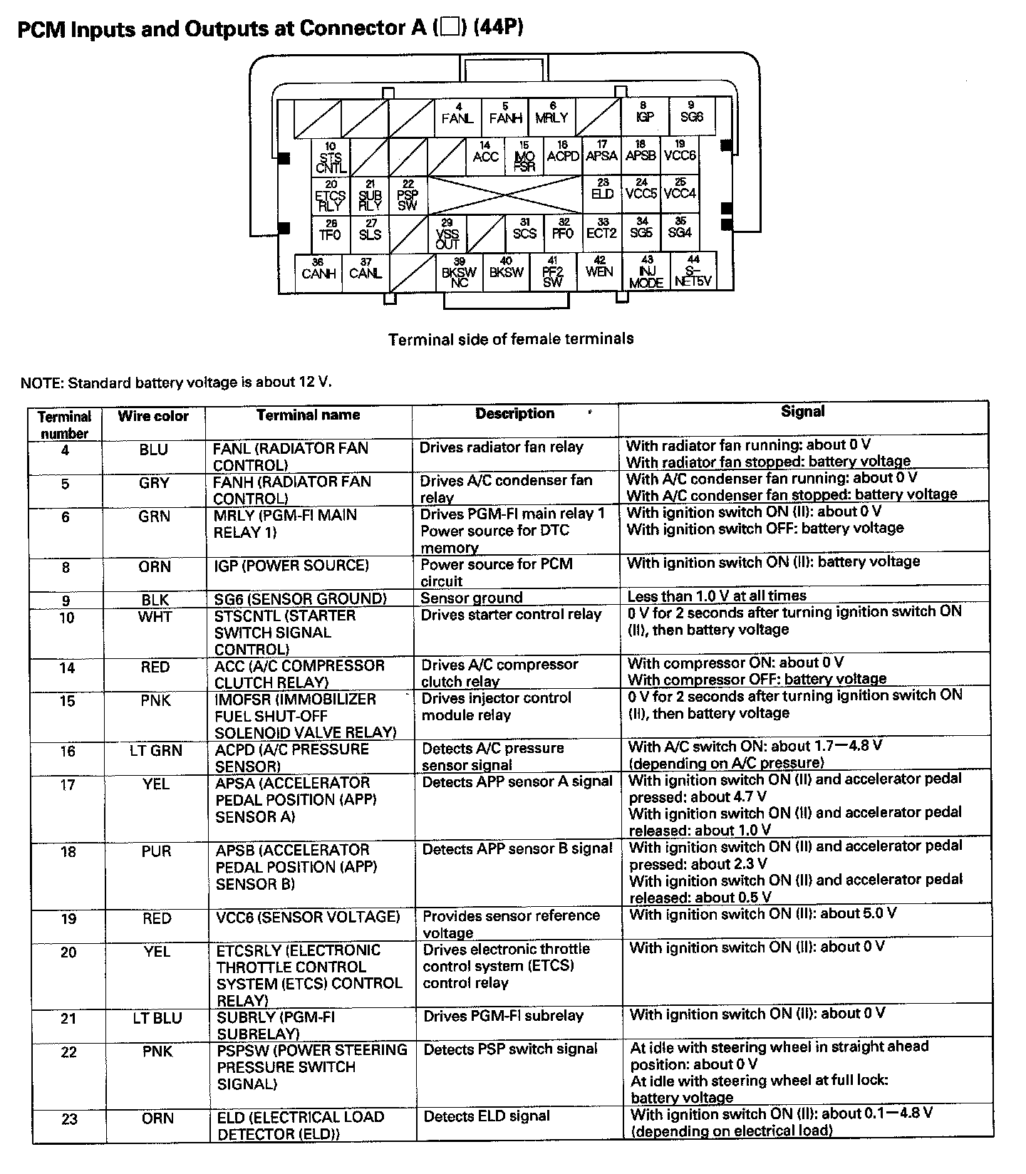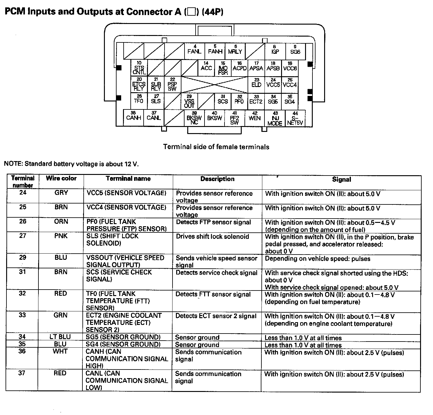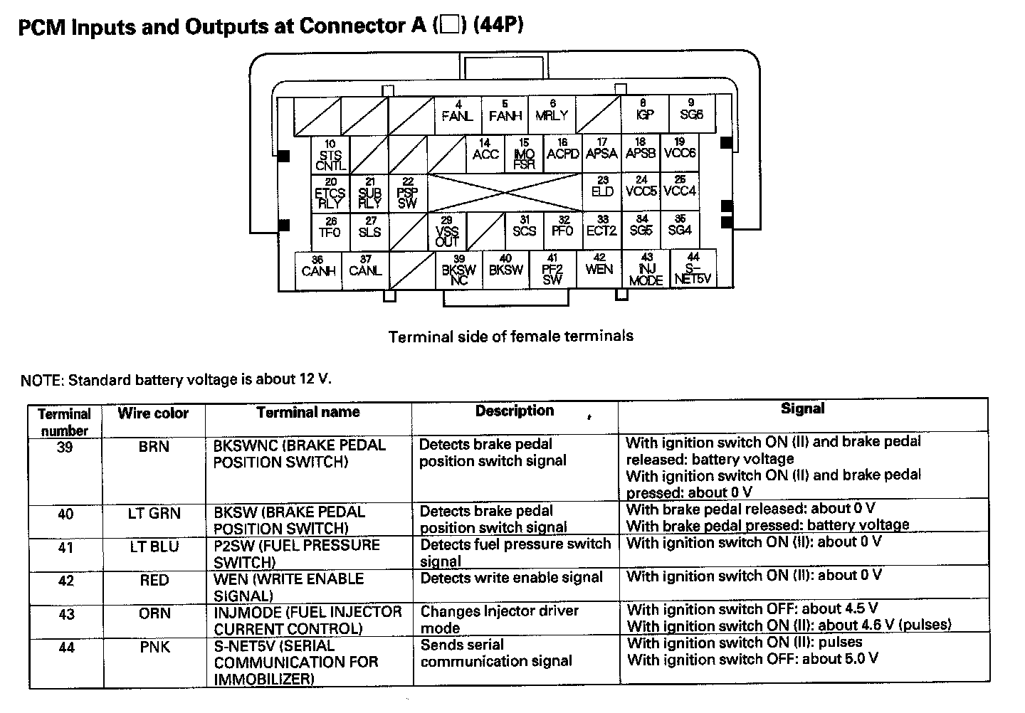 PCM Inputs And Outputs At Connector A (44P) Part 1: