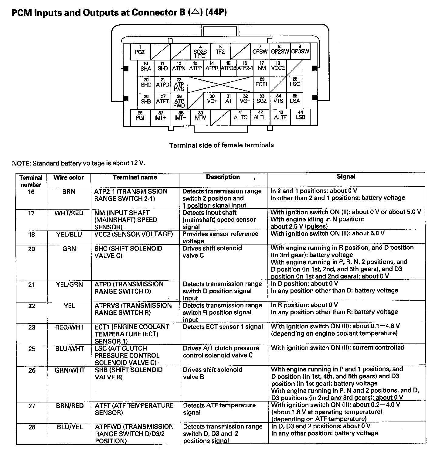 PCM Inputs And Outputs At Connector B (44P) Part 3: