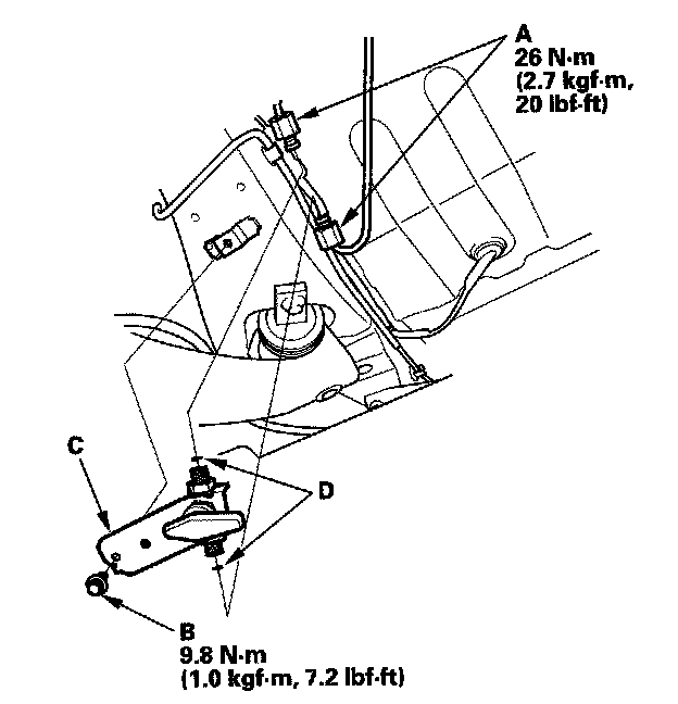 5. Remove the bolt (B) and the manual shut-off valve (C).