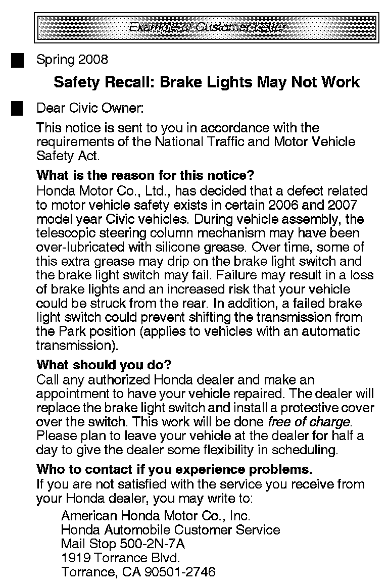 Recall - Potential Brake Pedal Position Switch Failure