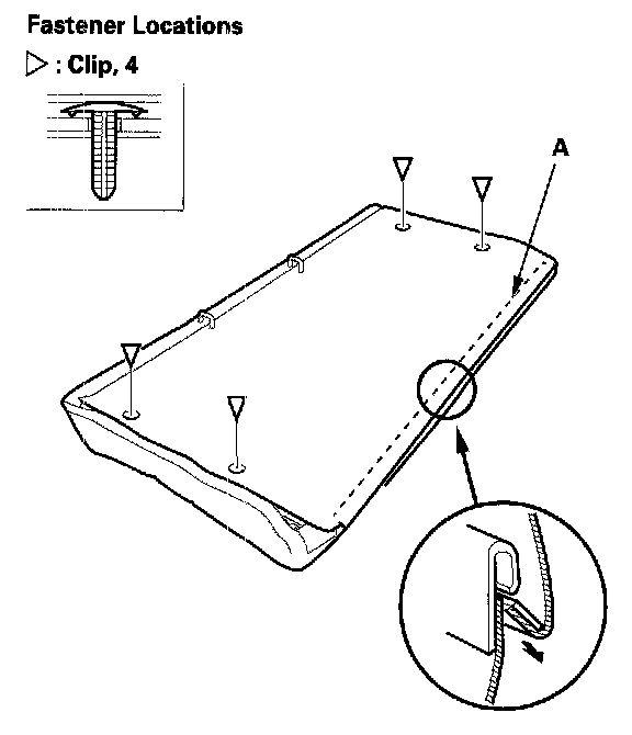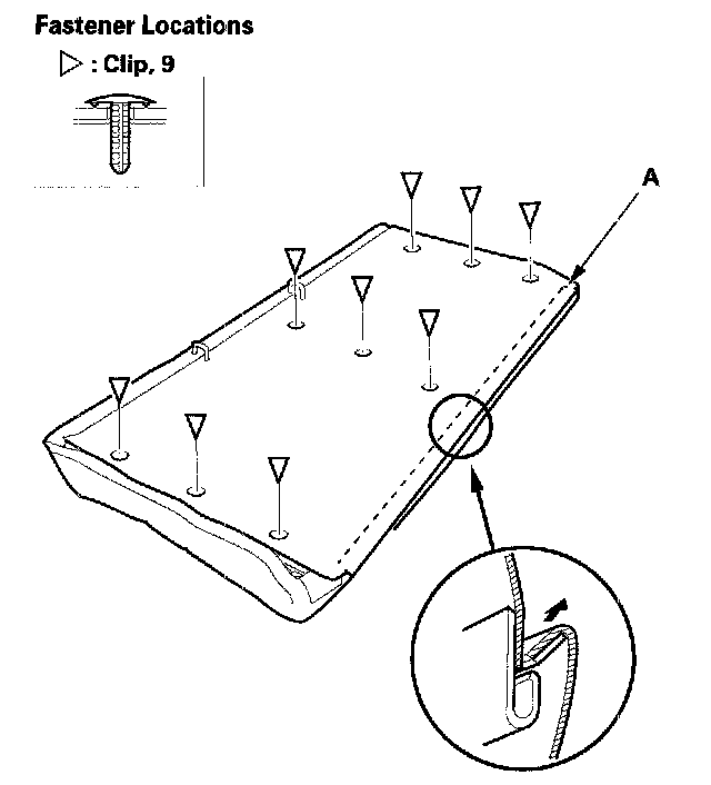 - Replace any clips (A) you removed with new ones. Install them with commercially available upholstery ring pliers (B).