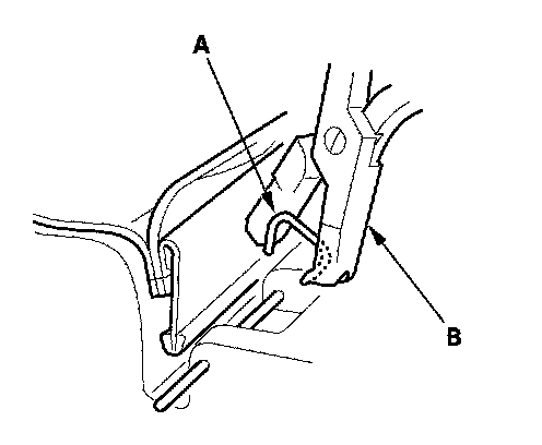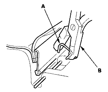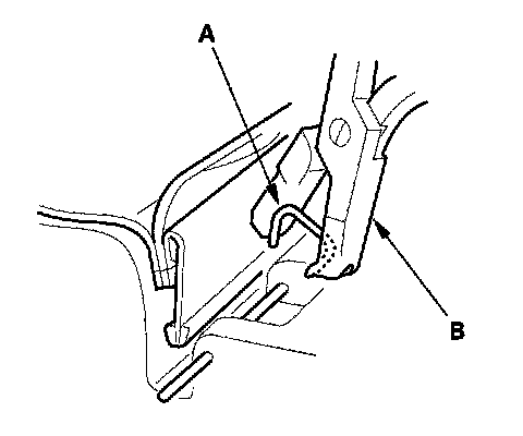 4. Release the lower hook (A), and clips.