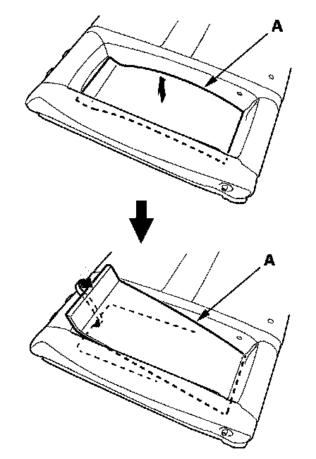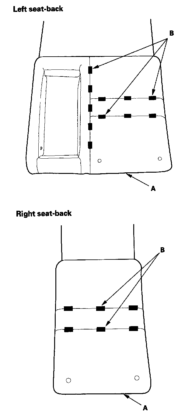 4. Left seat-back: Pull out the center portion of the armrest back panel (A) to release upper edge of the armrest back panel.