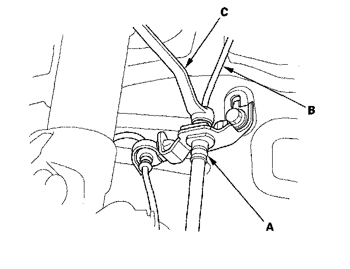 ^ With clip type: Install the brake hose on the brake hose bracket (B) with a new brake hose clip (C).