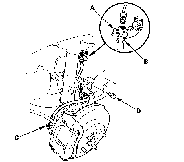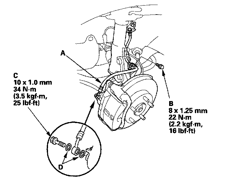 4. Remove the brake hose mounting bolt(s) (D), then remove the brake hose.