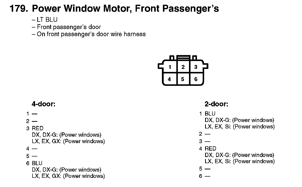 179. Power Window Motor, Front Passenger's: