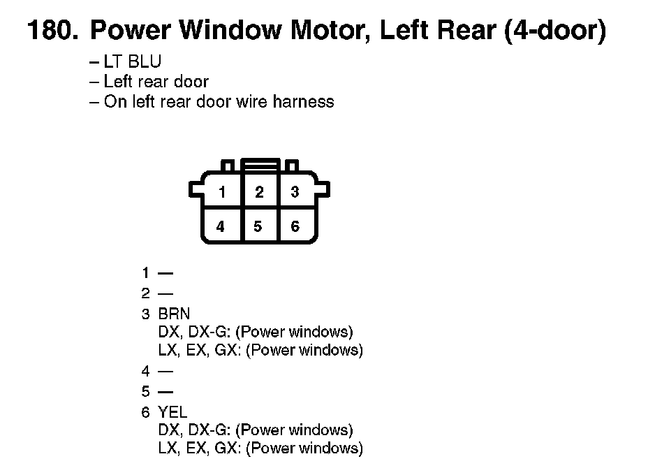 180. Power Window Motor, Left Rear (4-door):
