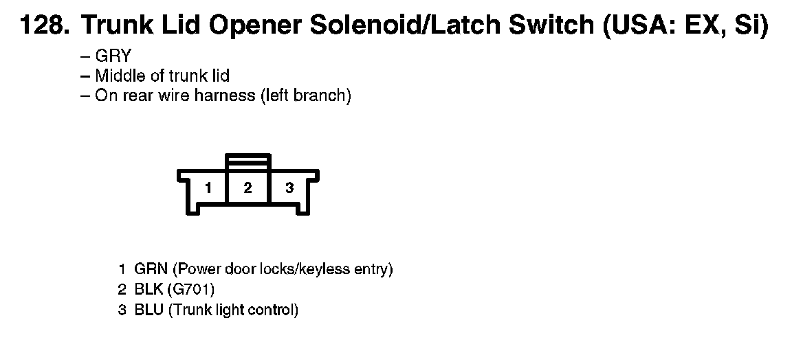 128. Trunk Lid Opener Solenoid/Latch Switch (USA: EX, Si):
