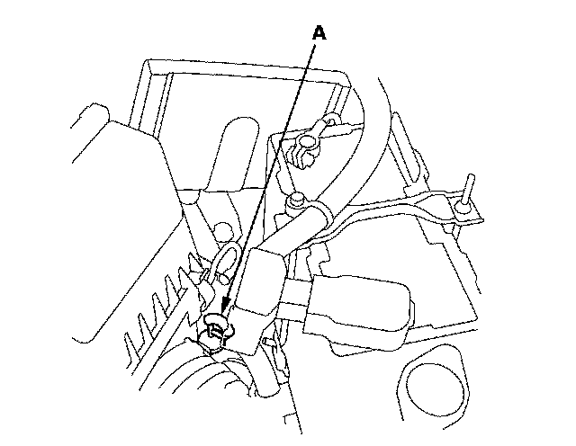 8. If necessary, fill the transmission with the recommended fluid through the dipstick hole (A) to bring the fluid level up to about midway between the upper mark and lower mark of the dipstick with the ATF. Do not fill the fluid to excess of the upper mark. Always use genuine Honda ATF DW-1 (ATF-Z1 has been replaced with ATF DW-1, Honda Service News Nov 2010) automatic transmission fluid (ATF). Using a nonHonda ATF can affect shift quality.
