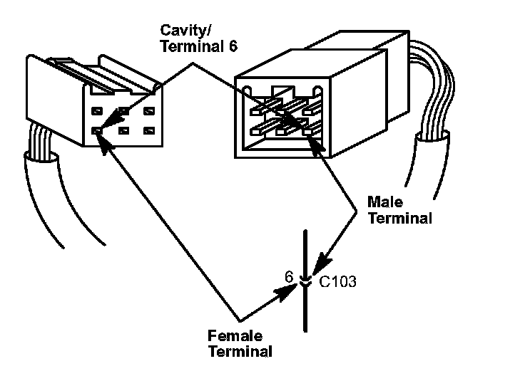 The connector cavity number is listed next to each terminal on the circuit schematic. The cavity/terminal shown is #6.