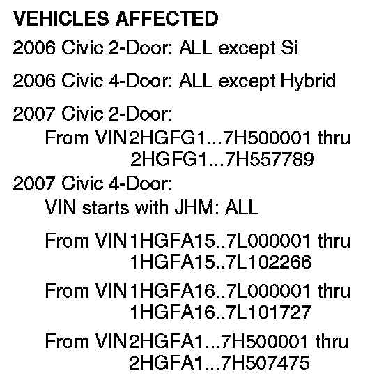 Applies To: See VEHICLES AFFECTED