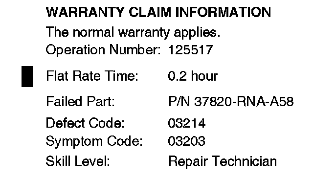Update the PGM-FI software with the HDS and software version 2.009.007 or later. Refer to Service Bulletin 01-023, Updating Control Units/Modules.