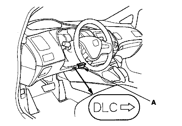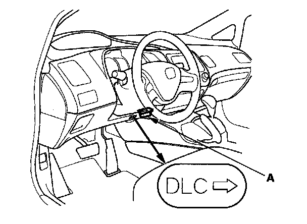 2. Connect the HDS to the data link connector (DLC) (A) located under the driver's side of the dashboard.