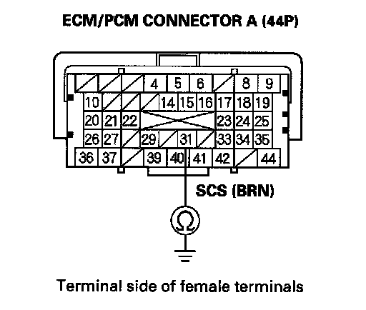 7. Check for continuity between ECM/PCM connector terminal A31 and body ground.