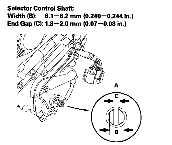 11. If the measurement of the selector control shaft end is within the standard, replace the transmission range switch. If the measurement is out of the standard, repair the selector control shaft end, and recheck the transmission range switch continuity.