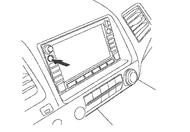 OPEN button - Tilts the screen down to access the CD player and the PC card slot. The navigation DVD is behind the plastic cover.