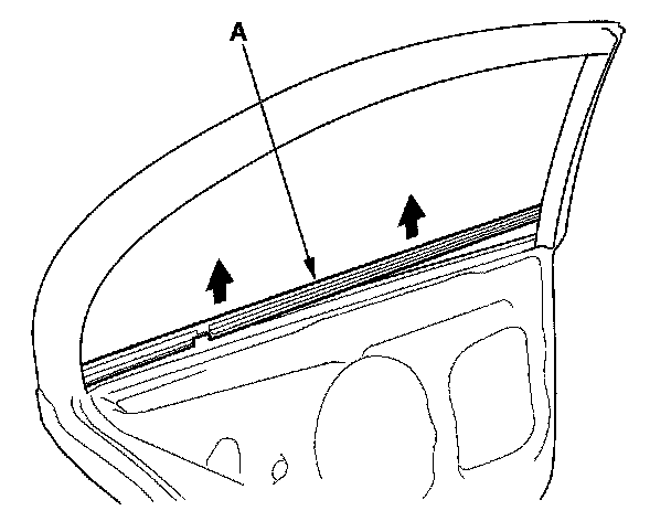 3. Starting at the front, slowly pull up the rear door glass outer weatherstrip (A).