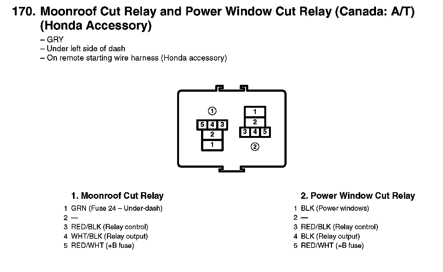 170. Moonroof Cut Relay And Power Window Cut Relay (Canada: A/T) (Honda Accessory):