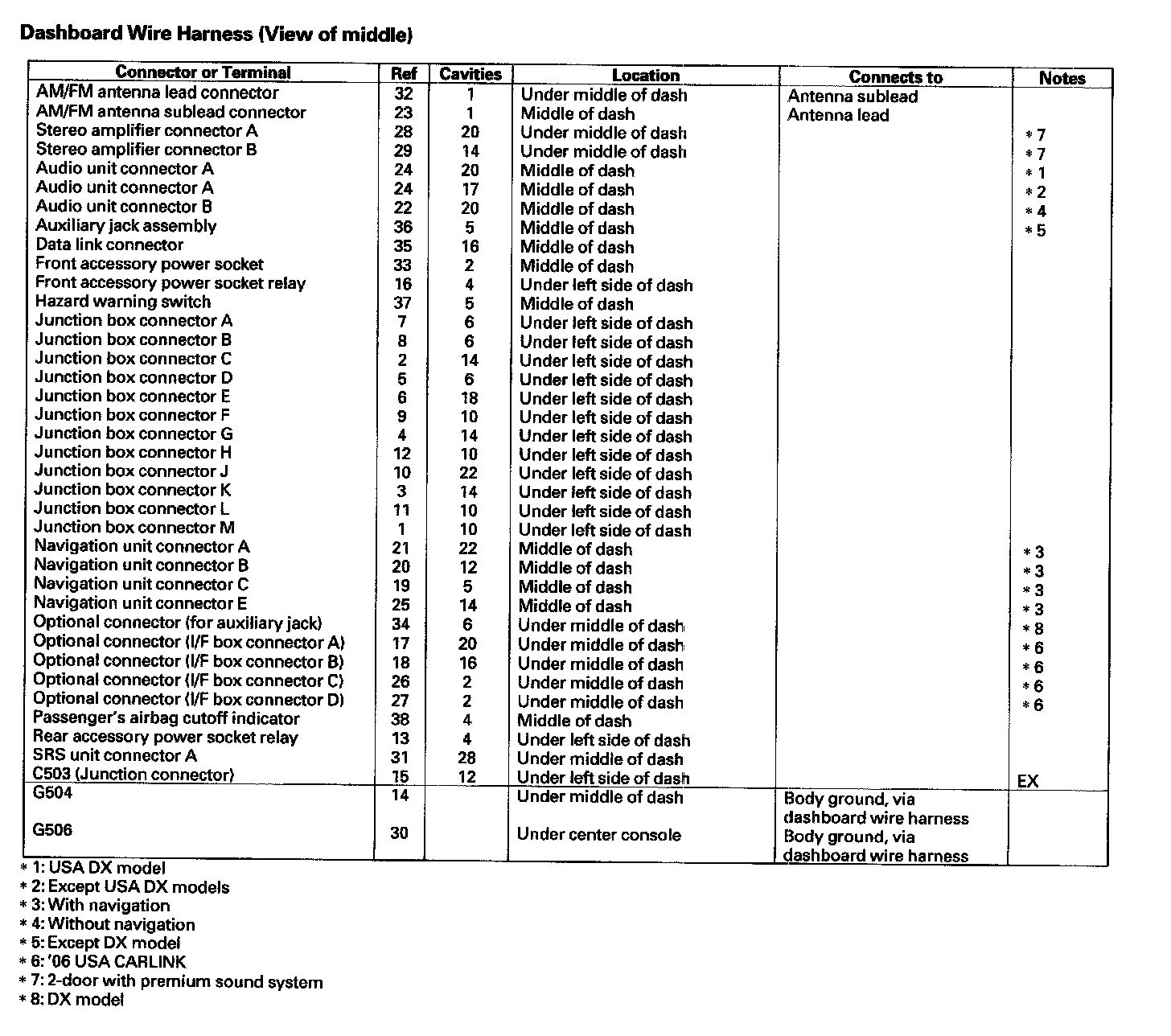 Dashboard Wire Harness (View Of Middle):