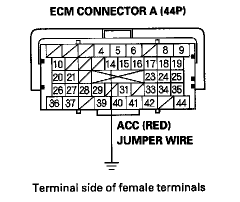 13. Momentarily connect ECM connector terminal A14 to body ground with a jumper wire several times.