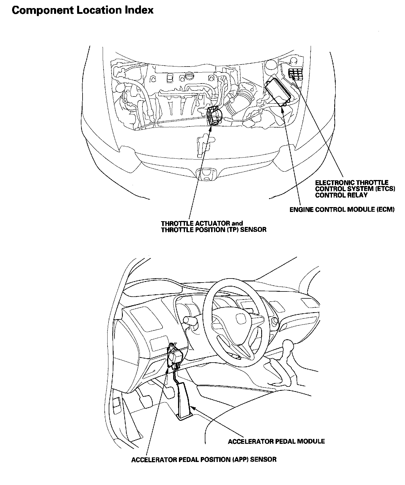Electronic Throttle Control System Component Location Index: