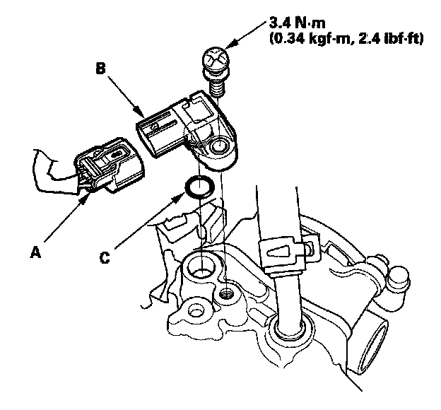 Install the parts in the reverse order of removal with a new O-ring (C).