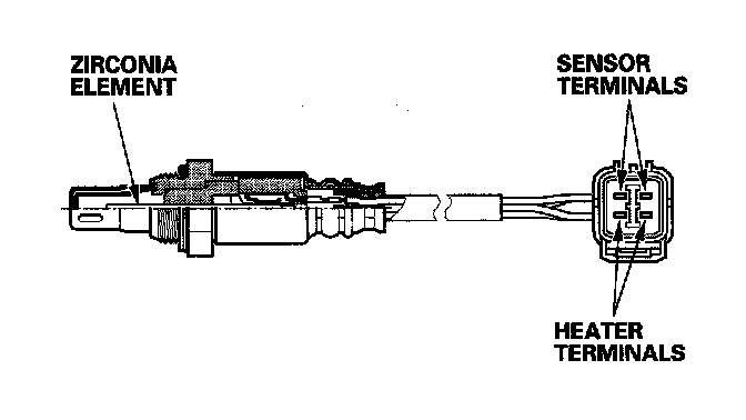 The A/F sensor operates over a wide air/fuel range. The A/F sensor is installed upstream of the TWC; and sends signals to the ECM which varies the duration of fuel injection accordingly.